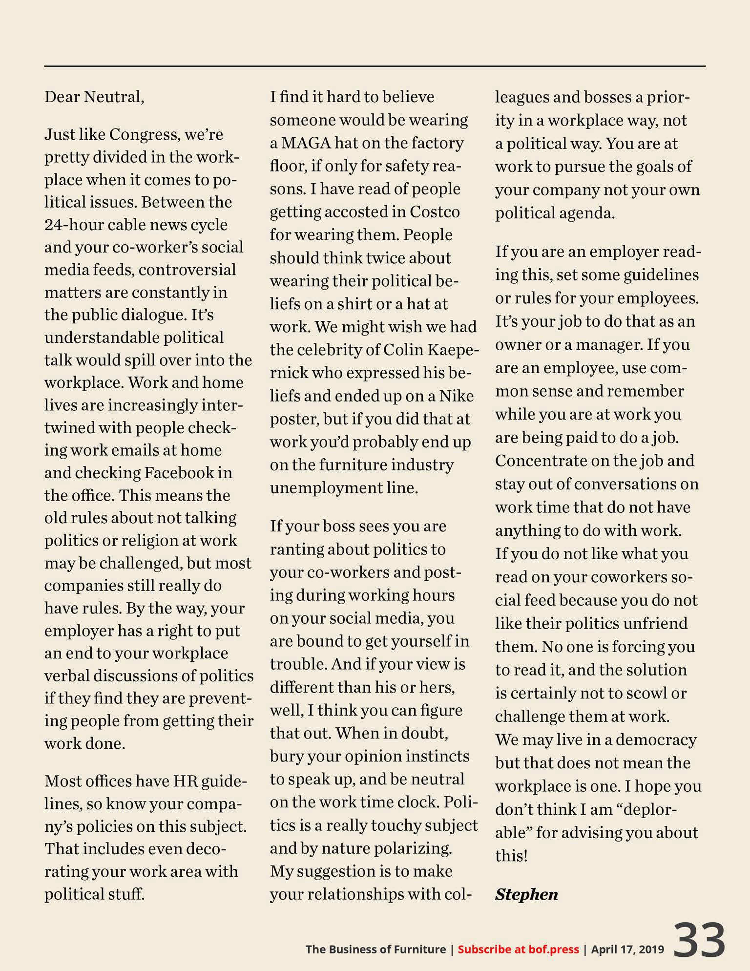 Stephen Says Column